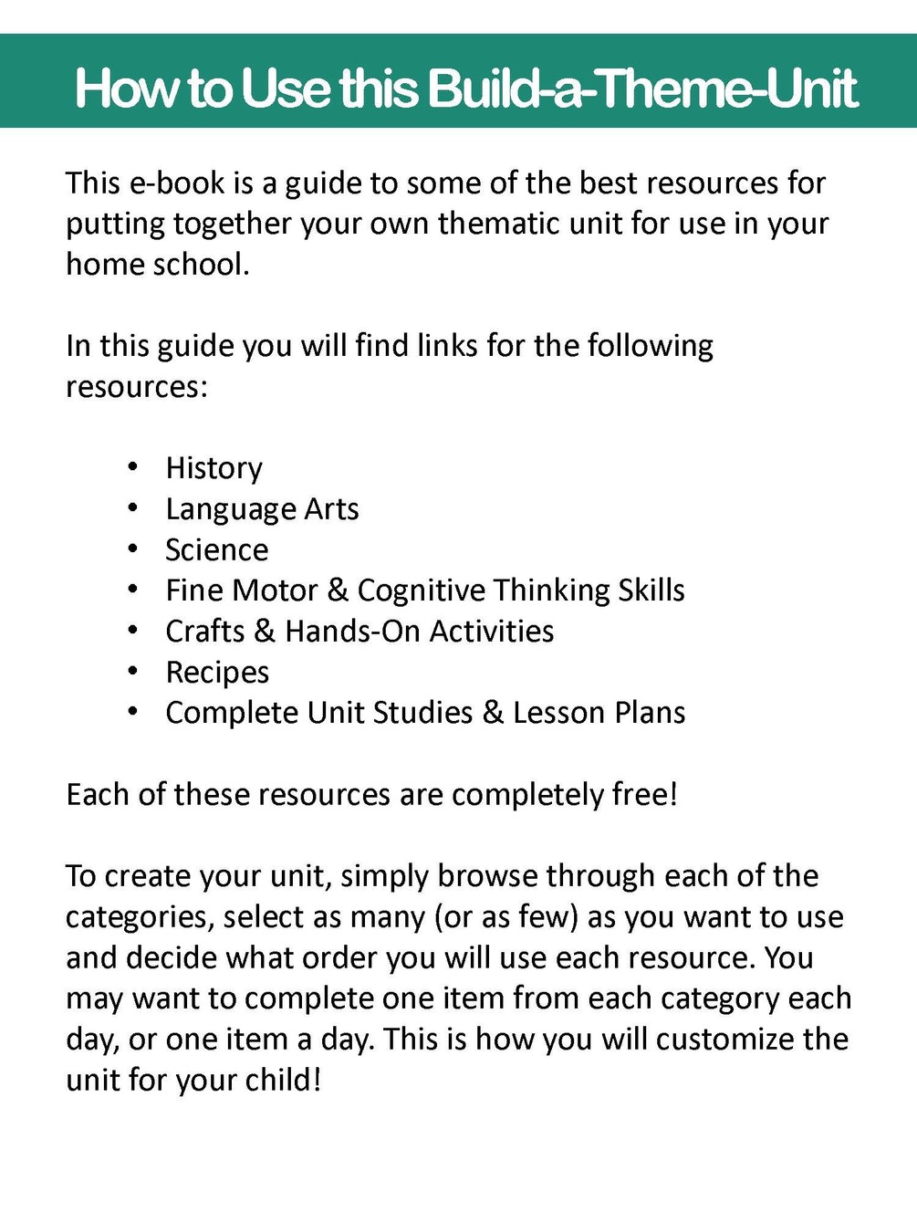 This free Thanksgiving Unit Study Guide is a guide to some of the best resources for putting together your own thematic unit for use in your .